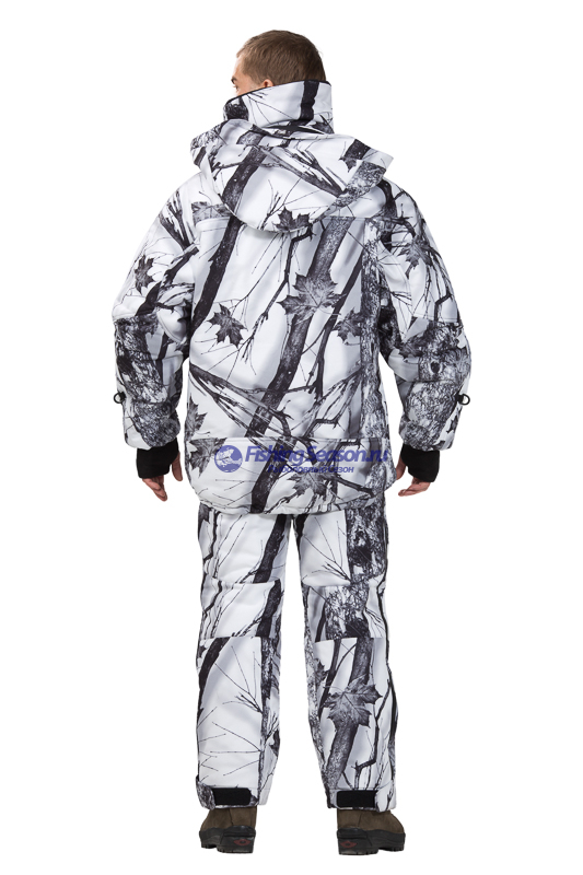 Тёплый костюм для экстремальных условий, состоящий из куртки и брюк-самосбросов. Благодаря использованию утеплителя Тинсулейт® тип Z практичен, подходит для работы во влажных условиях, понравится охотникам. Особенности: мембранная ткань верха, не издающая шума при движении контактные зоны усилены прочной «дышащей» тканью анатомический покрой локтевой и коленной зоны швы в местах напряжения ткани усилены закрепками застёжки – двухзамковые молнии YKK снаружи продублированы клапанами, изнутри утеплены планками тесьма вдоль планок предотвращает попадание ткани в молнии Куртка (Valdez): удлинённая спина отстёгивающийся капюшон с козырьком регулируется эластичными шнурами и клапаном с Velcro манжеты рукавов из тёплой и мягкой ткани Polartec® Power Stretch® частично заменяют перчатки высокий воротник изнутри утеплён тканью Polartec® три тёплых наружных кармана: нагрудный и два боковых на молниях под планками четыре внутренних кармана на молниях внутренняя ветрозащитная юбка низ регулируется эластичными шнурами с фиксаторами Брюки (Hike): двухзамковые боковые молнии по всей длине брюк позволяют быстро переодеваться, не снимая обуви два вместительных боковых кармана на молниях объём пояса и нижней части брюк регулируется резинкой и клапанами с Velcro съёмные бретели регулируются по длине Область применения: охота, зимняя рыбалка, полярные экспедиции. Внешняя ткань: Polyester Camo (5000 мм Н2О; 5000 г/м2/24 часа) Внутренняя ткань: Nylon Tactel® Утеплитель: Тинсулейт® тип Z Температурный режим: до -25° С