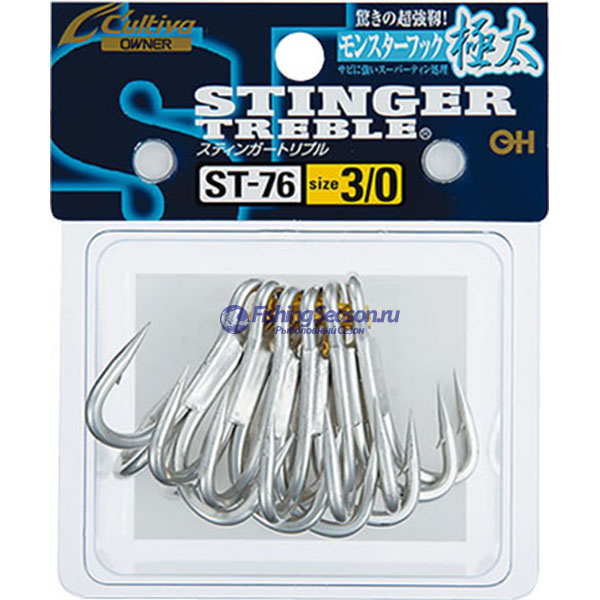 Тройник характеризуется очень прочной пайкой. Каплевидное колечко снижает риск захлеста, а луженое покрытие обеспечивает защиту от воздействия соли и воды. В общем, если вы увлекаетесь охотой на самых крупных представителей морской ихтиофауны, рекомендуем купить мощные тройные крючки Owner ST-76 #3/0.