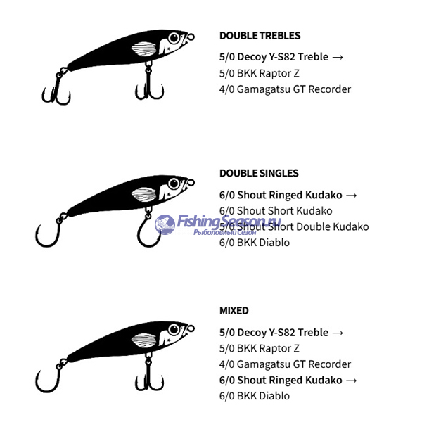 Волкер можно оснащать: 2-я тройными крючками, 2-я одинарными крючками и смешанным оснащением. Для оптимальной игры используйте комбинацию тройника на брюшке и одинарного крючка в хвостовой части.